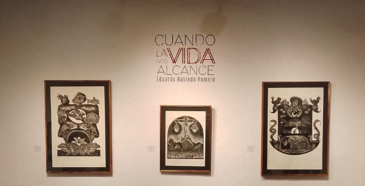 Cuando la vida nos alcance" es una serie de grabados de Eduardo Robledo que reflexiona sobre la vida y la muerte desde el realismo mágico. Inspirada en historias chamanísticas y leyendas de Xochimilco, la obra plantea preguntas sobre el propósito de la existencia y la plenitud, usando simbolismos como nahuales, aves y escenas cotidianas.
