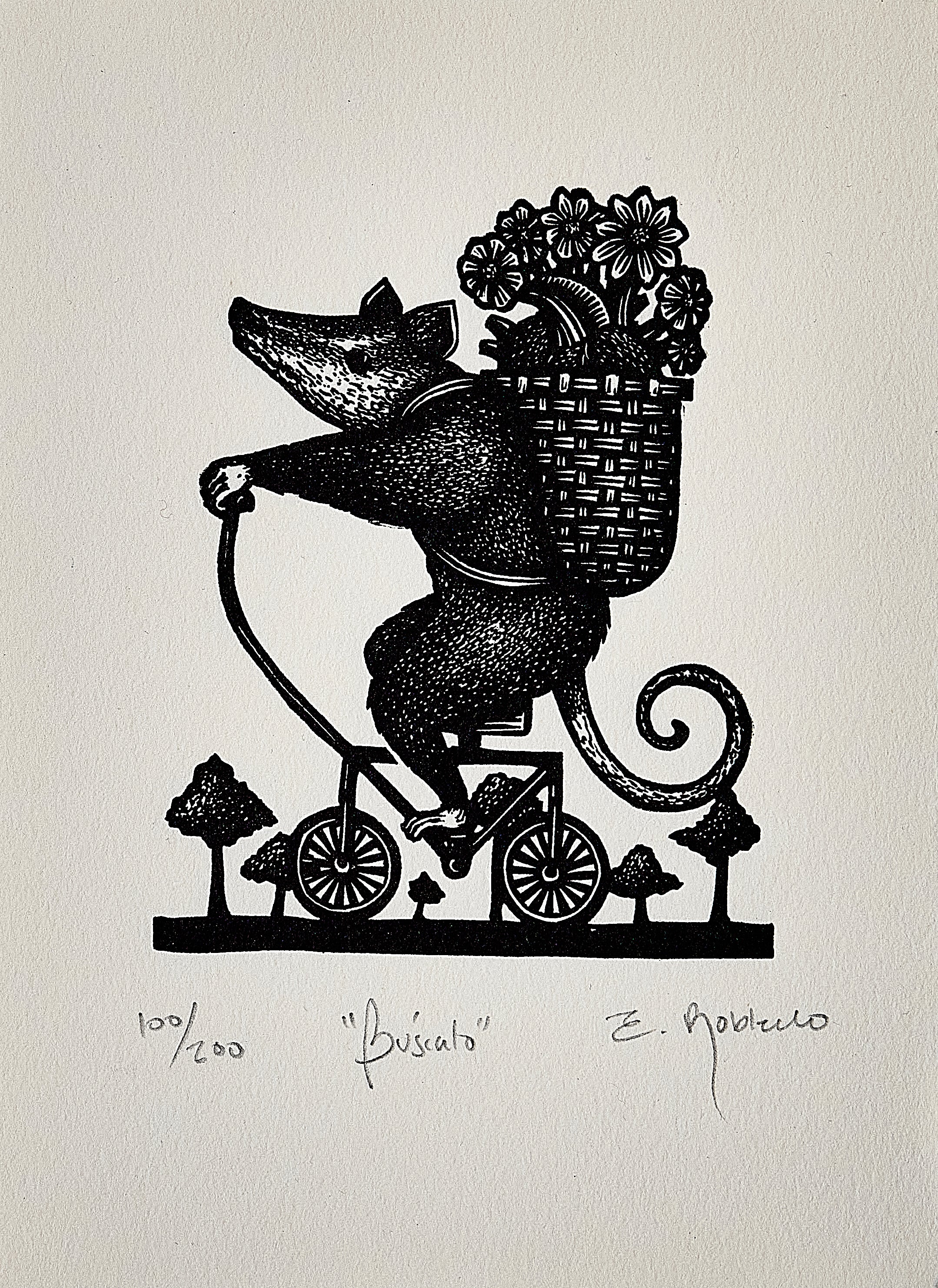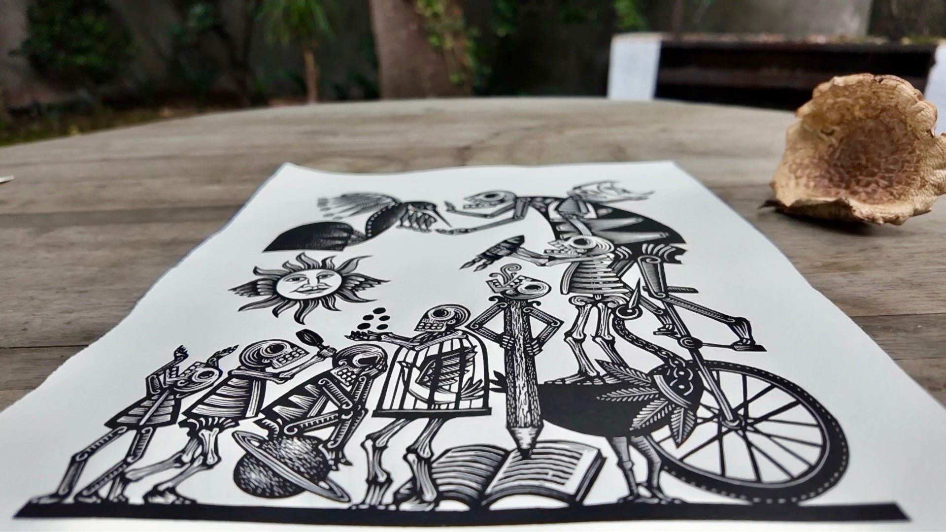 From drawing to printing, every step is done by hand. Eduardo Robledo uses linocut techniques to create images with soul.